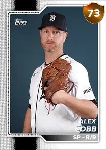 This is the Live card for Alex Cobb, featured in MLB The Show 26. He's a 73 Overall Bronze card primarily playing SP. Available on the marketplace for around 33 stubs (sell now price). Alex Cobb has a elite Meta Score of 65.83, indicating his overall effectiveness in competitive play. On the mound, Alex Cobb exhibits below average H/9 with a 46 rating, below average K/9 with a 52 rating, and great BB/9 with a 80 rating. His overall pitching profile is defined by below average control with a Control rating of 50, elite velocity with a Velocity rating of 91, and great break with a Break rating of 88. He utilizes a 4-pitch mix, spearheaded by a Splitter, complemented by a Sinker. Key pitches include: Splitter, Sinker, Knuckle-curve, 4-Seam Fastball. Alex Cobb is a 38-year-old baseball player, stands 6'3" and weighs 205 lbs, born in Massachusetts, currently playing for the Free Agents, bats R and throws R. Other available versions for Alex Cobb include: Live (74 Bronze).
