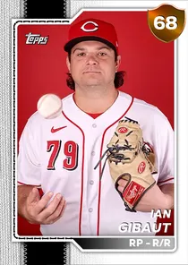This is the Live card for Ian Gibaut, featured in MLB The Show 26. He's a 68 Overall Bronze card primarily playing RP. Available on the marketplace for around 30 stubs (sell now price). Ian Gibaut has a elite Meta Score of 67.19, indicating his overall effectiveness in competitive play. On the mound, Ian Gibaut exhibits average H/9 with a 64 rating, below average K/9 with a 58 rating, and average BB/9 with a 65 rating. His overall pitching profile is defined by average control with a Control rating of 68, good velocity with a Velocity rating of 73, and great break with a Break rating of 83. He utilizes a 5-pitch mix, spearheaded by a 4-Seam Fastball, complemented by a Sweeper. Key pitches include: 4-Seam Fastball, Sweeper, Slider, Cutter, Circle Change. Ian Gibaut is a 32-year-old baseball player, stands 6'3" and weighs 250 lbs, born in Texas, currently playing for the Free Agents, bats R and throws R. Other available versions for Ian Gibaut include: Live (67 Bronze).