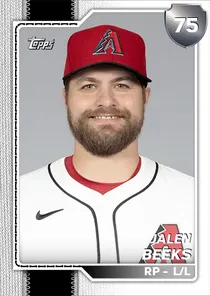 This is the Live card for Jalen Beeks, featured in MLB The Show 26. He's a 75 Overall Silver card primarily playing RP. Available on the marketplace for around 58 stubs (buy now price). Jalen Beeks has a elite Meta Score of 73.10, indicating his overall effectiveness in competitive play. On the mound, Jalen Beeks exhibits elite H/9 with a 93 rating, below average K/9 with a 52 rating, and average BB/9 with a 62 rating. With runners threatening, his Pitching Clutch rating of 82 shows great performance. His overall pitching profile is defined by below average control with a Control rating of 56, good velocity with a Velocity rating of 75, and good break with a Break rating of 70. He utilizes a 3-pitch mix, spearheaded by a 4-Seam Fastball, complemented by a Circle Change. Key pitches include: 4-Seam Fastball, Circle Change, Cutter. Jalen Beeks is a 32-year-old baseball player, stands 5'11" and weighs 215 lbs, born in Arkansas, currently playing for the Free Agents, bats L and throws L. Active Quirks for Jalen Beeks: Stopper. Other available versions for Jalen Beeks include: Live (71 Bronze).