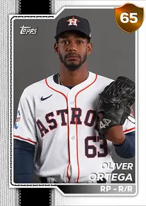 This is the Live card for Oliver Ortega, featured in MLB The Show 26. He's a 65 Overall Bronze card primarily playing RP. Available on the marketplace for around 29 stubs (sell now price). Oliver Ortega has a elite Meta Score of 61.01, indicating his overall effectiveness in competitive play. On the mound, Oliver Ortega exhibits good H/9 with a 75 rating, below average K/9 with a 52 rating, and below average BB/9 with a 39 rating. His overall pitching profile is defined by below average control with a Control rating of 59, great velocity with a Velocity rating of 83, and below average break with a Break rating of 58. He utilizes a 3-pitch mix, spearheaded by a 4-Seam Fastball, complemented by a 12-6 Curve. Key pitches include: 4-Seam Fastball, 12-6 Curve, Cutter. Oliver Ortega is a 29-year-old baseball player, stands 6'0" and weighs 185 lbs, born in Dominican Republic, currently playing for the Free Agents, bats R and throws R.
