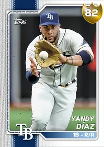 This is the Live card for Yandy Díaz, featured in MLB The Show 26. He's a 82 Overall Gold card primarily playing 1B. Available on the marketplace for around 1,021 stubs (sell now price). Yandy Díaz has a elite Meta Score of 75.27, indicating his overall effectiveness in competitive play. At the plate, Yandy Díaz displays elite contact overall, with specific ratings of 87 Contact vs Right and 96 Contact vs Left. He brings average power to the plate, evident from his 53 Power vs Right and 80 Power vs Left. In terms of plate discipline, his great Vision stands at 82, paired with his average Discipline rating of 66. Yandy Díaz is a 34-year-old baseball player, stands 6'1" and weighs 235 lbs, born in Cuba, currently playing for the Rays, bats R and throws R. Active Quirks for Yandy Díaz: Homebody, Fighter, Night Player. Other available versions for Yandy Díaz include: 2025 Finest (99 Diamond), Spotlight (96 Diamond), Live (85 Diamond).